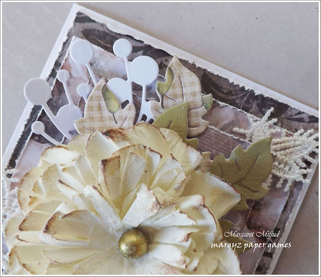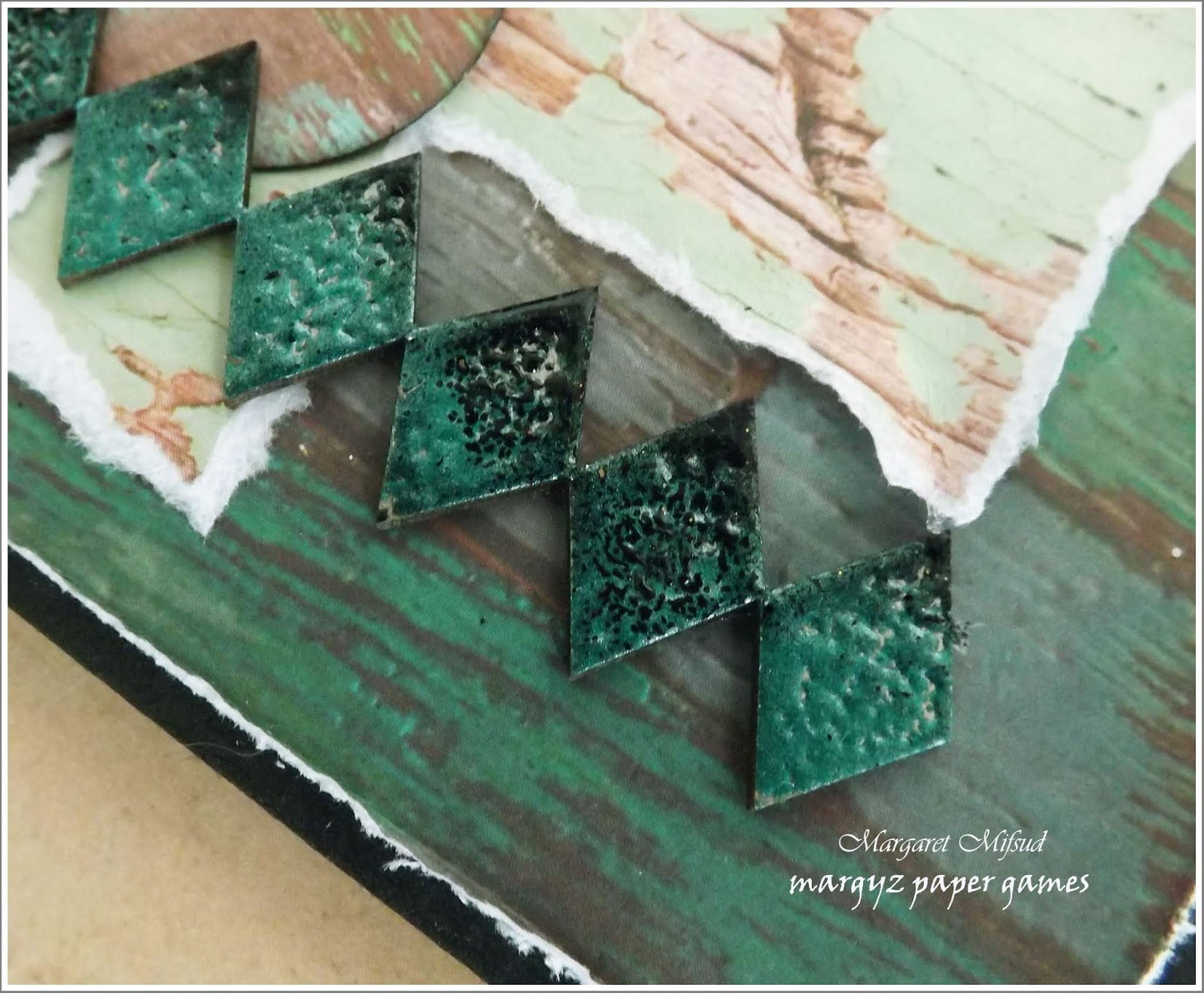 I also randomly heat embossed the piece with metallic powders in bronze and green to get the aged effect.