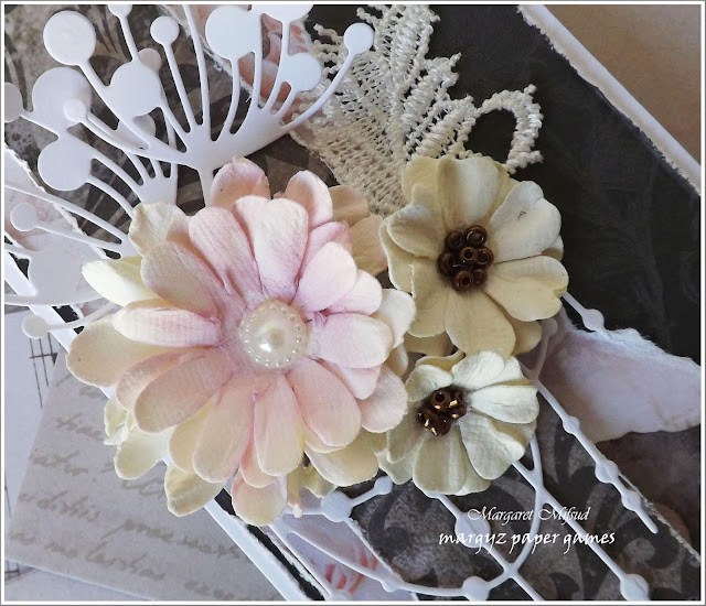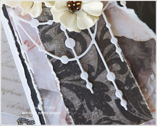 .. and also used a Tim Holtz MM die at the bottom of the piece. The chippie sentiment is by Scrapmatts. Love them!!