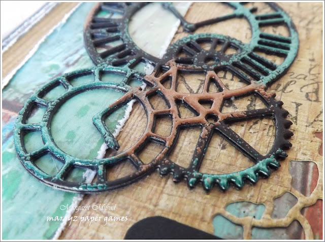 The clock and gears are a die from Simply Dies. I cut it several times from black cardstock and then simply glued a few of them together for extra dimension.