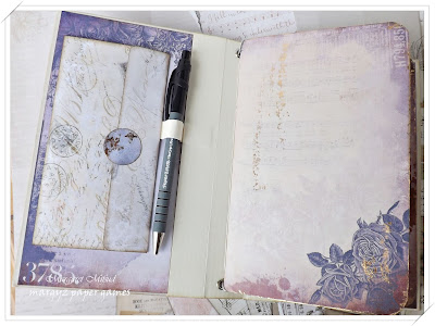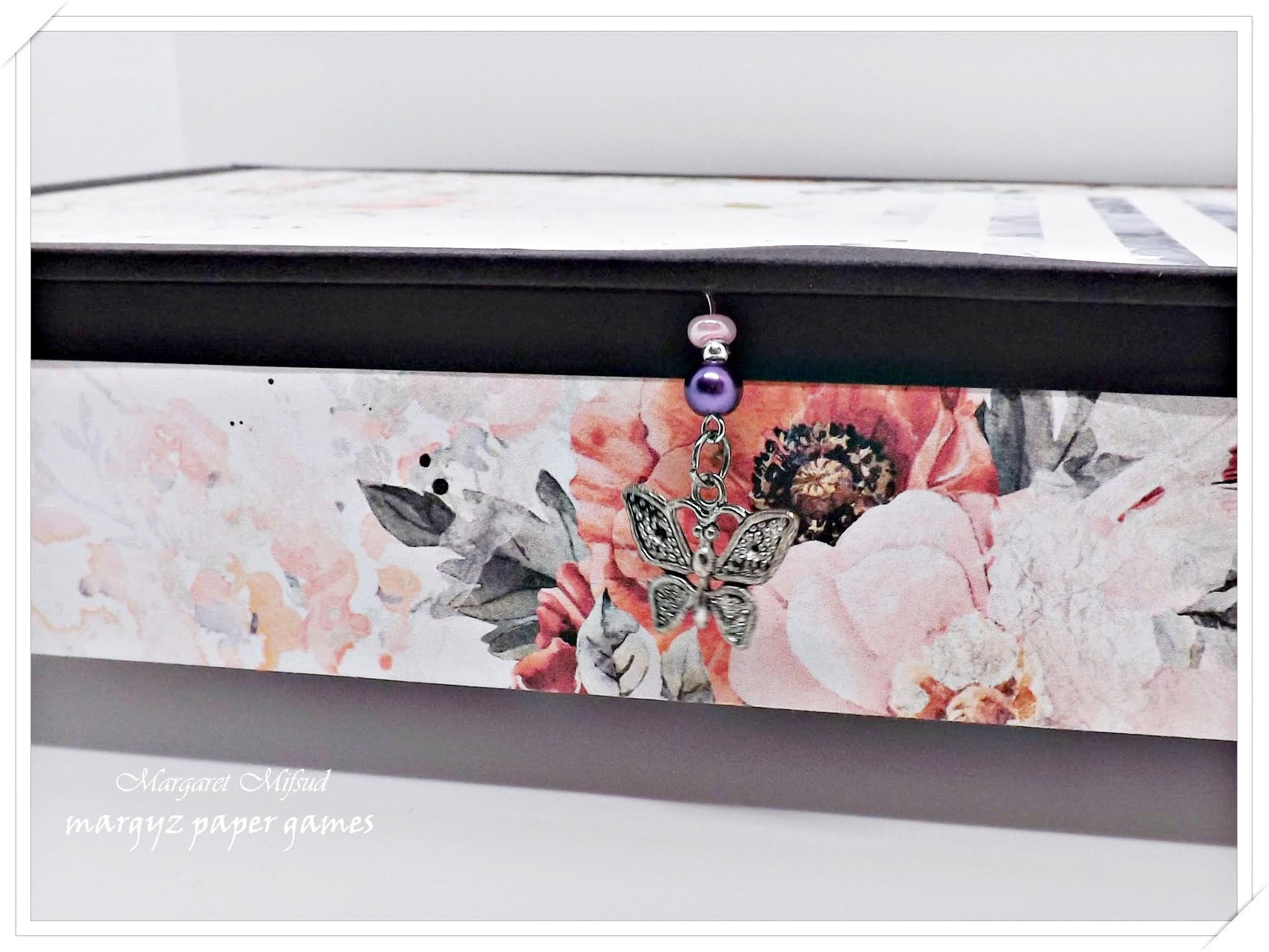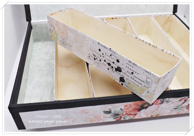 The outside of the box is covered in the Rue Garden papers by Sherri Mitchell of Antique Paperie. As I said before, I had to adjust the size of the paper to make it big enough to fit and ended up with just half of the design but I love it! Looks so pretty.