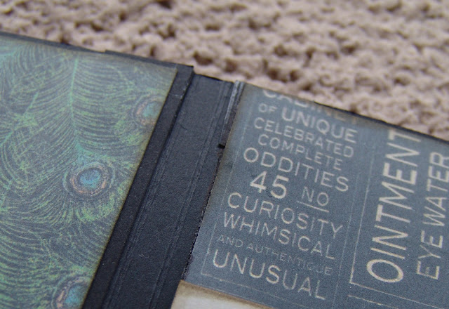 Hi Everyone! Thought I'd give you an update on the Mini I'm working on. It's made with Graphic 45's Olde Curiosity Shoppe papers and I'm using the binding system as explained in my last post. So far it is working well but I did have to change it slightly because I didn't like how it looked. My original idea was to use a couple of small hinges to create the cavity for attaching the pages to the spine of the book, but I didn't like the fact that in some instances the hinge was actually visible. So I decided to attach a strip of cardboard over the hinges before adding the paper.