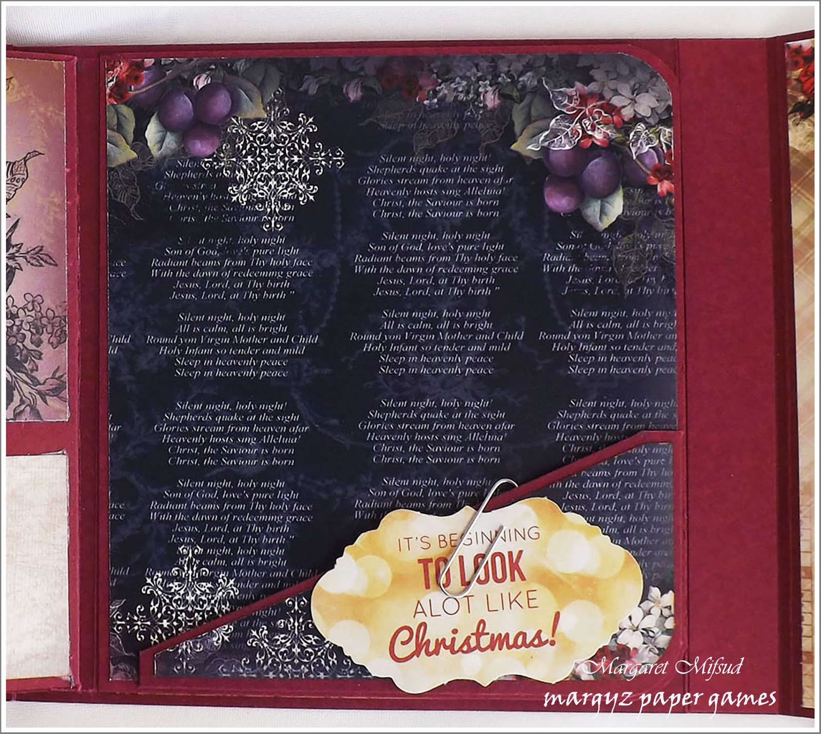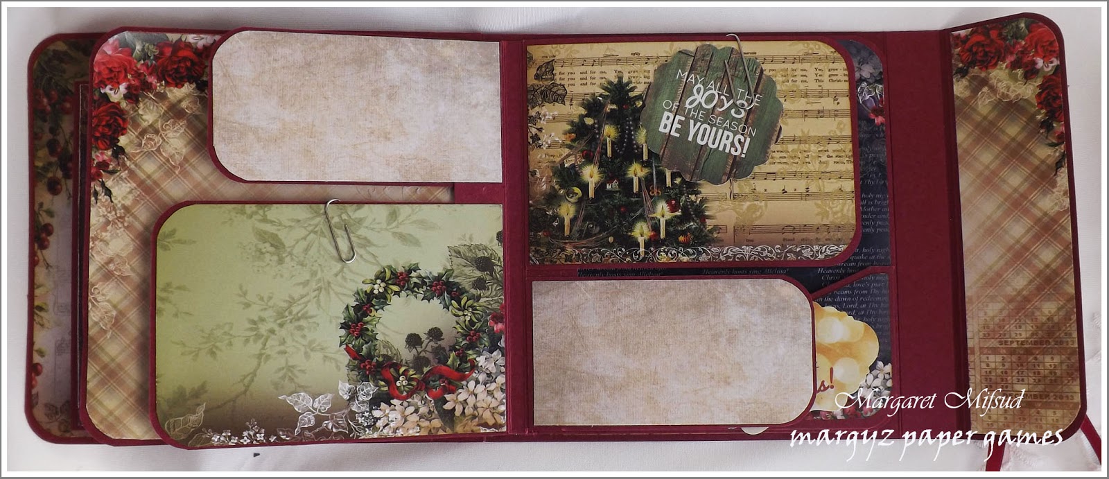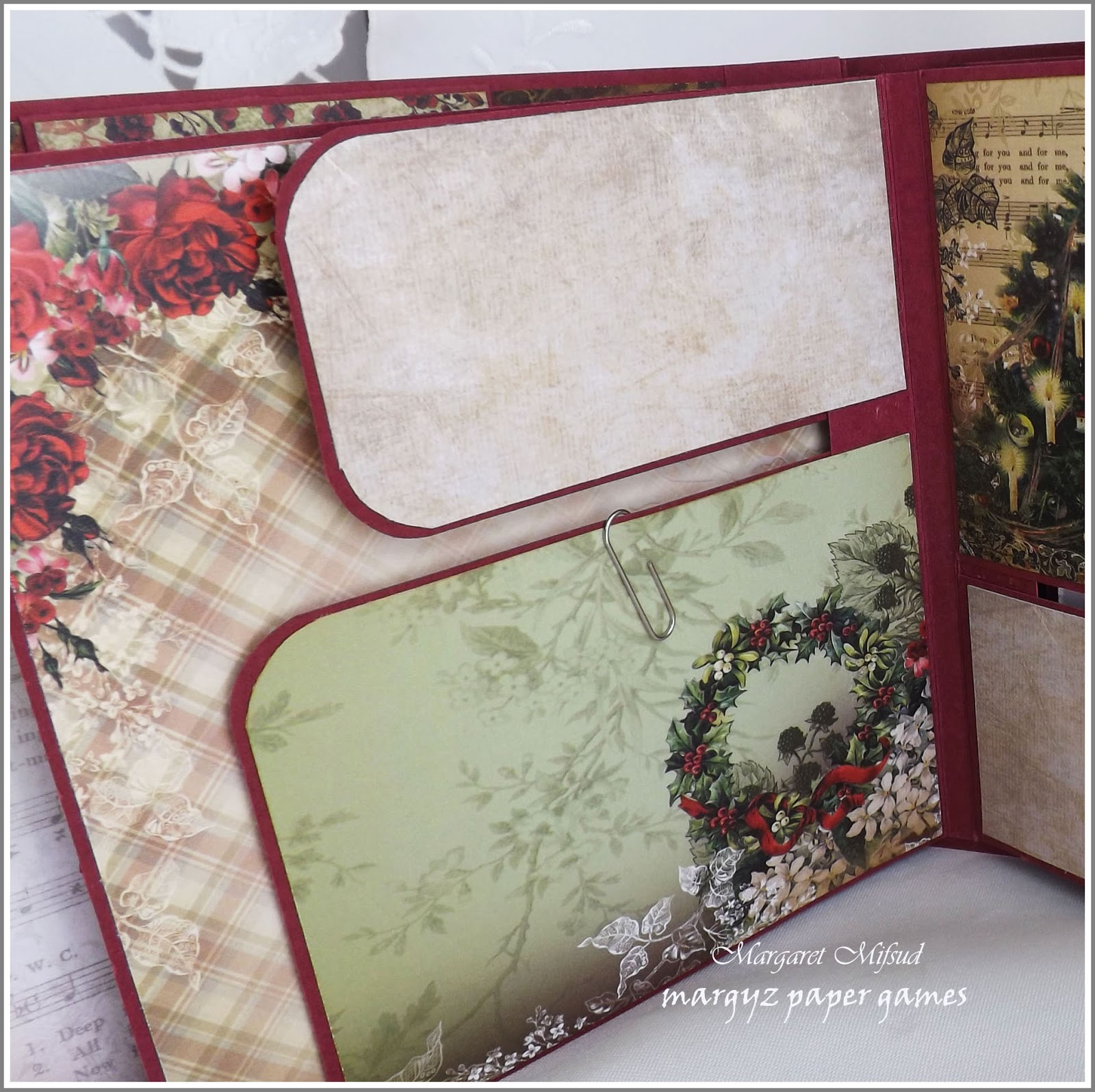 ReplyDeleteHAD to come see this Margaret - AMAZING!!! I love how you've added the embellished wreath to the front and created all those clever pages, flaps and the booklet. Quite simply beautiful - you are one clever lady! Happy Christmas and here's wishing you a fabulous 2016. Jenny xxx