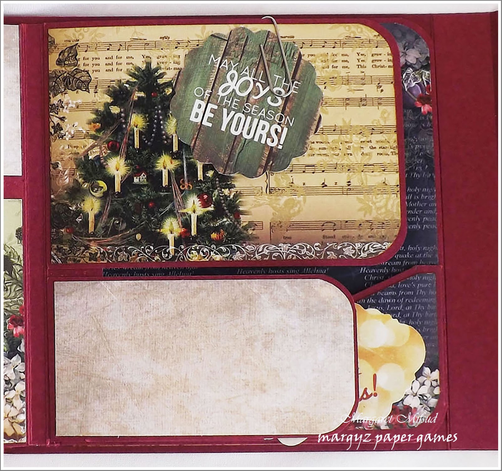 Oh wow Marg this album is sooo beautiful.. each page is a masterpiece and the papers really are so pretty.. love your albums, I hope you can fill it with wonderful Christmas memories!