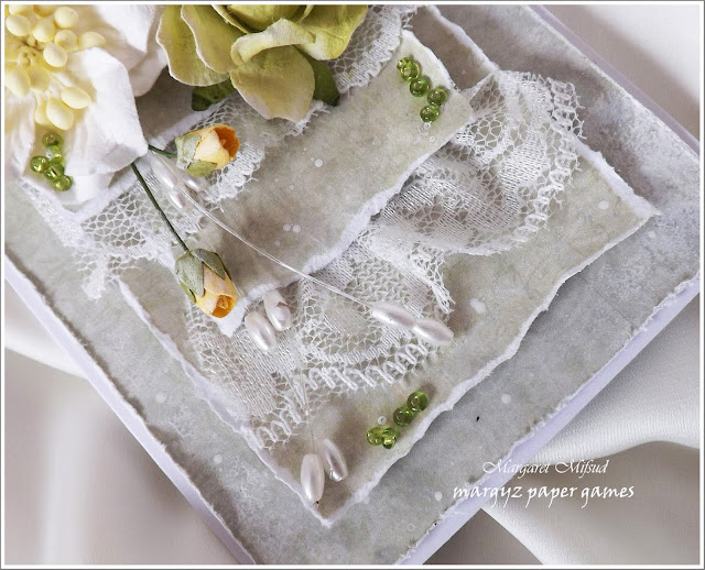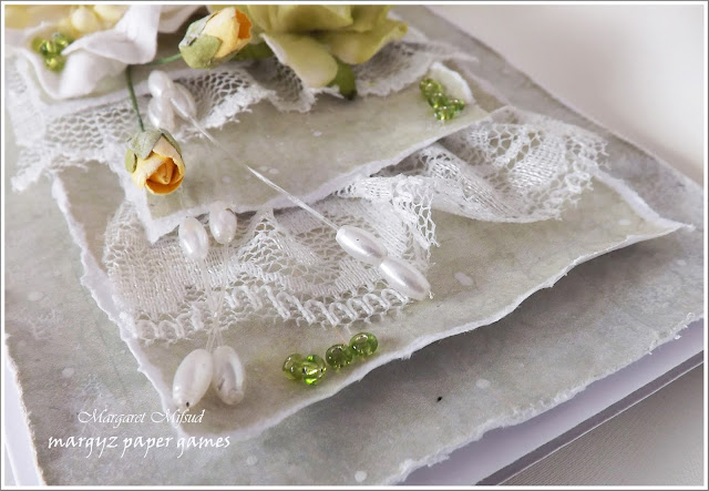 The extra layers were simply torn to size and, to soften the look even more, I gathered some lace from my stash and layered it in between.