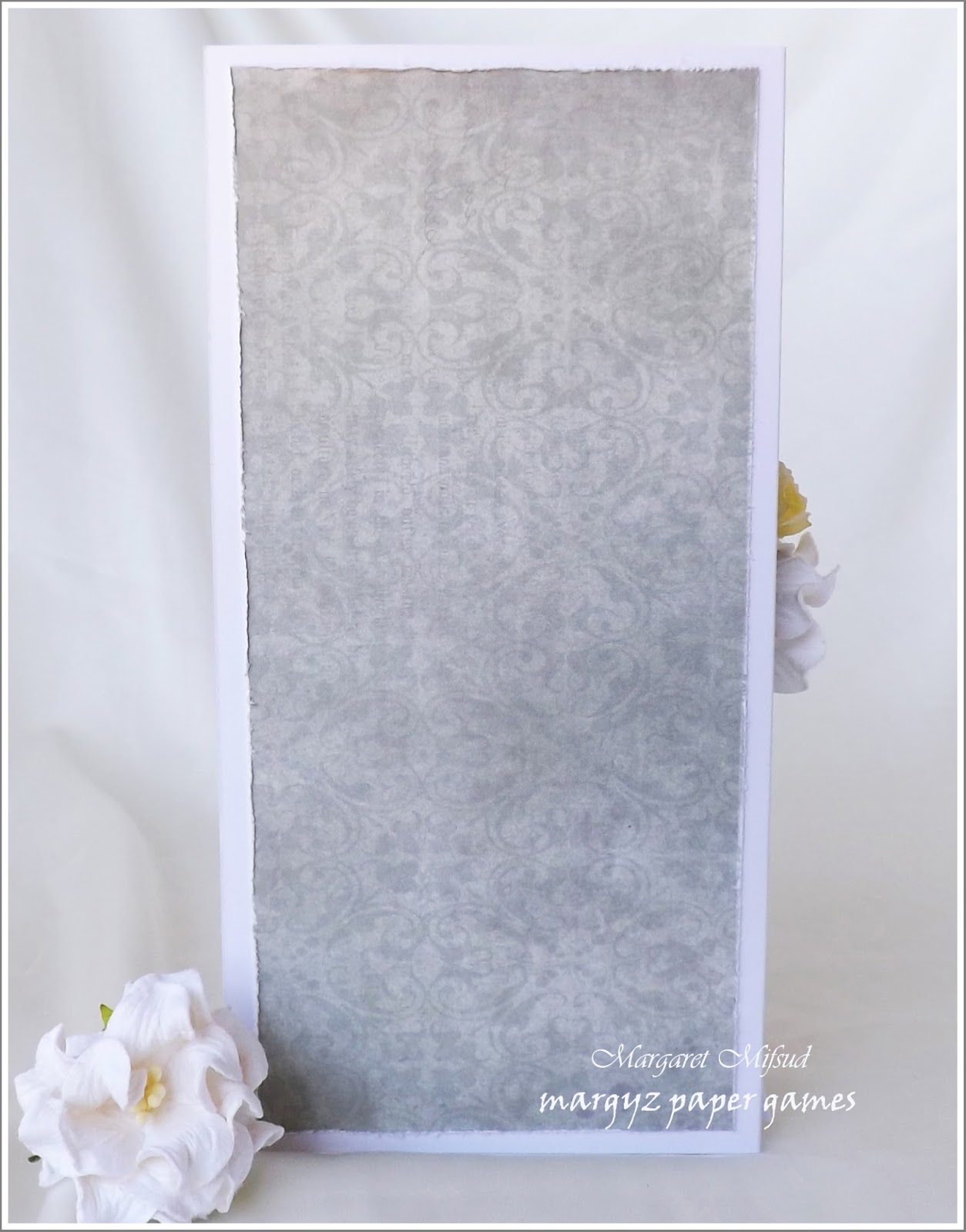 The paper used is Vintage Journal 01 and, as I wanted a soft and subtle look to my card, I did lighten the colour a little before printing.