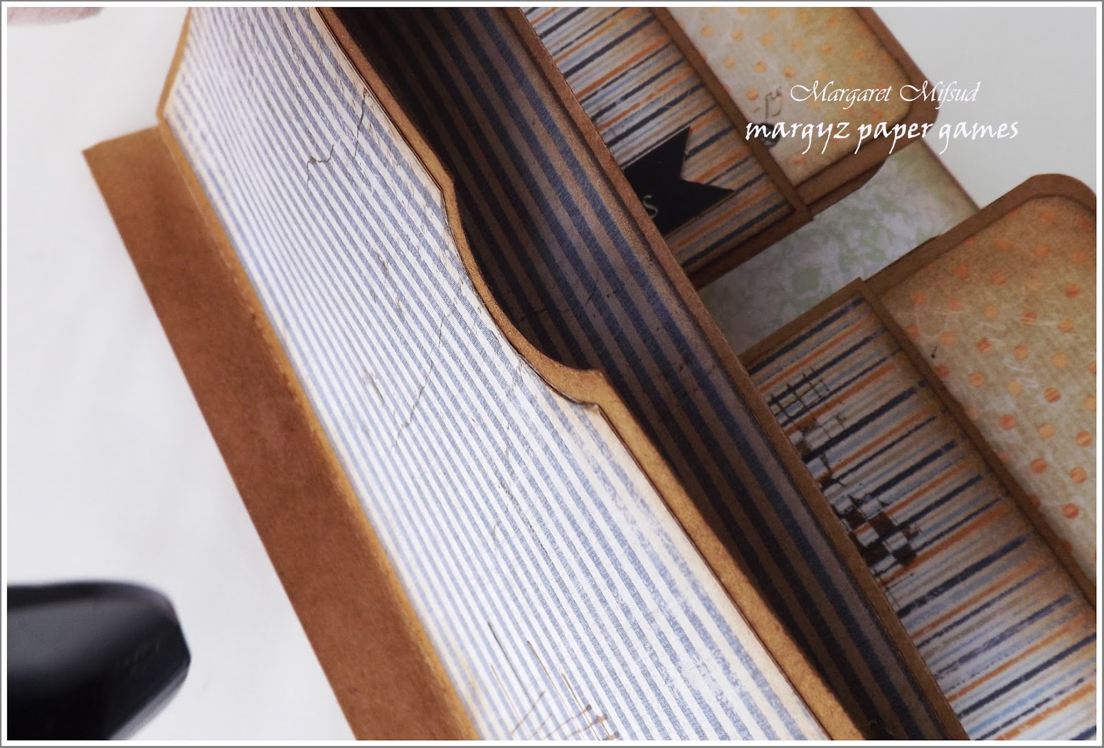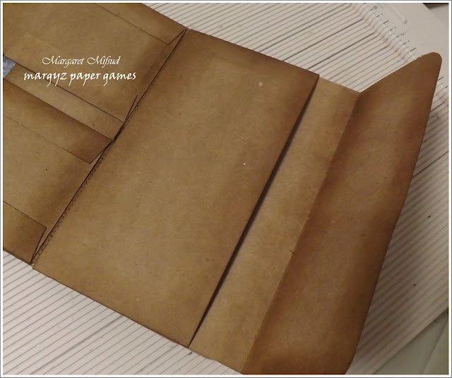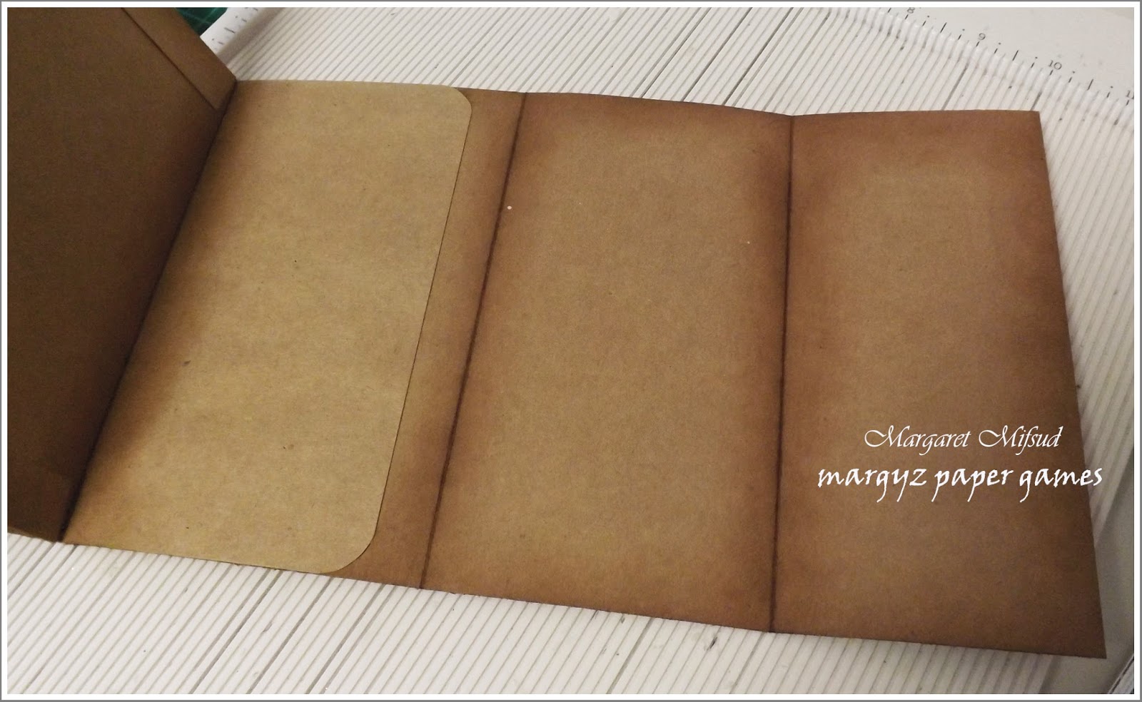 Here is the page set with papers added. ('Cos I forgot to take a photo before I matted everything. Duhh!! ) When adding your papers, do not cover the base as yet. That will get done after it is adhered to the outer cover.