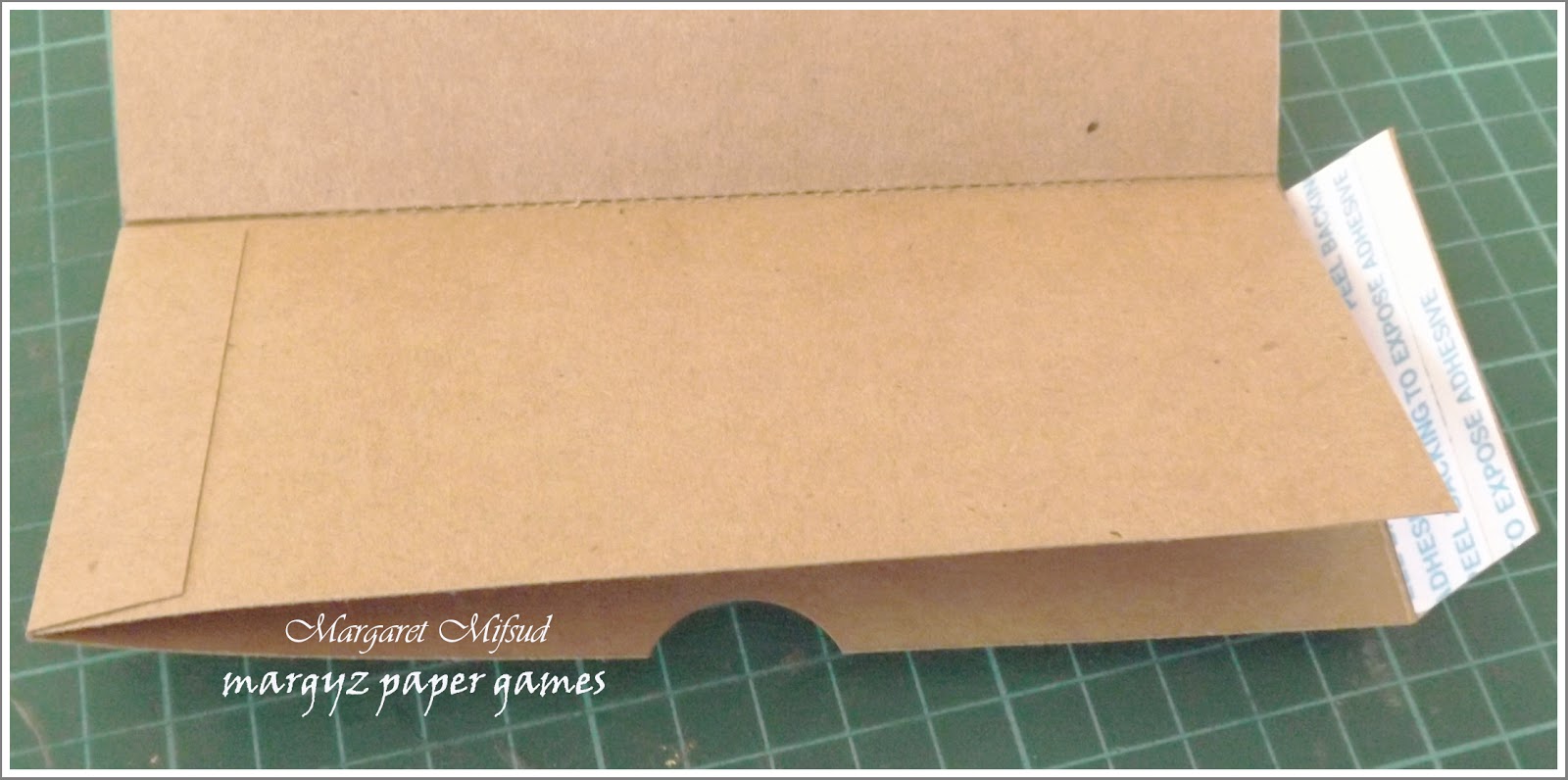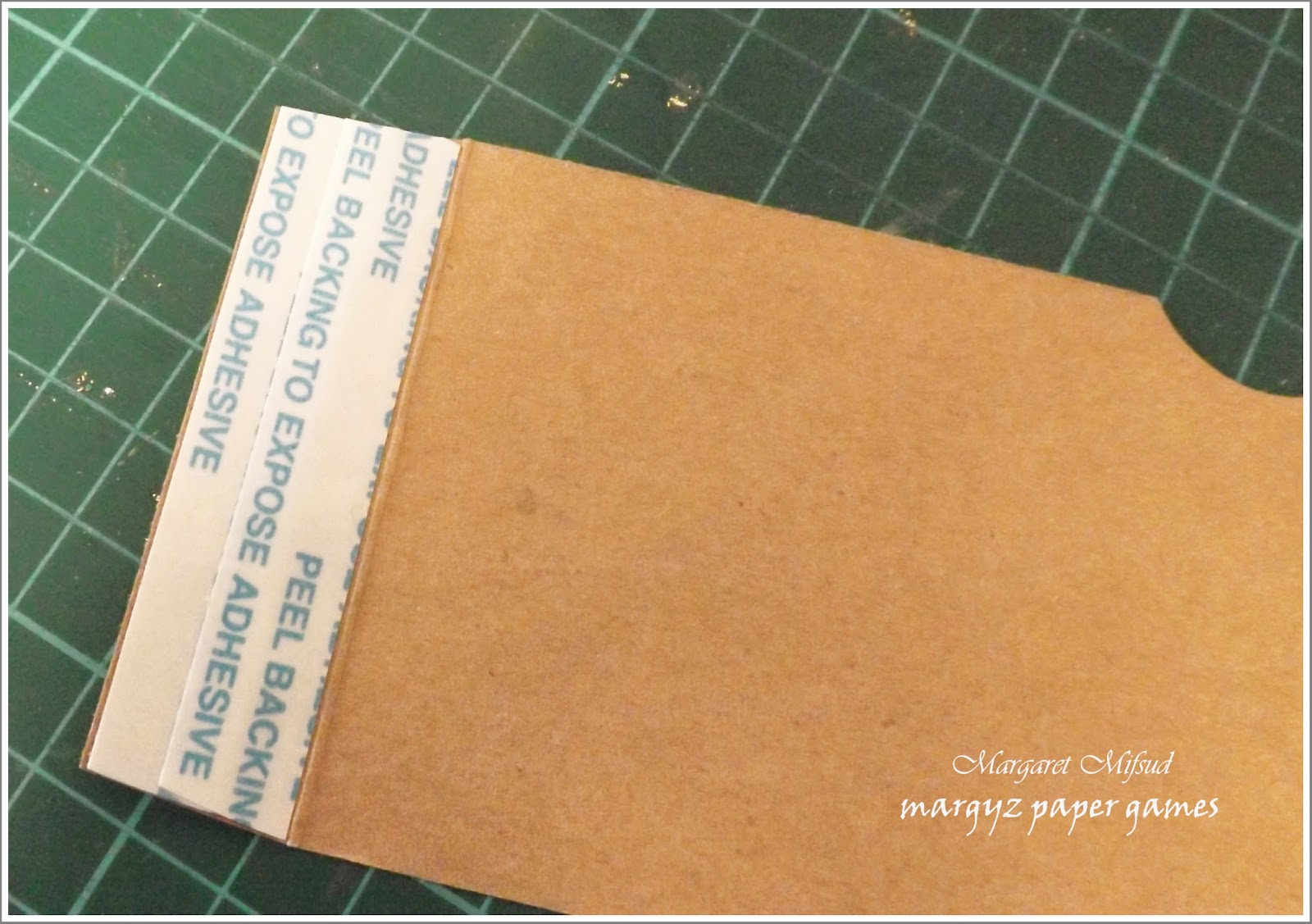 Attach double sided tape to the scored sections and cut a small V shape from each end as on the previous pocket.