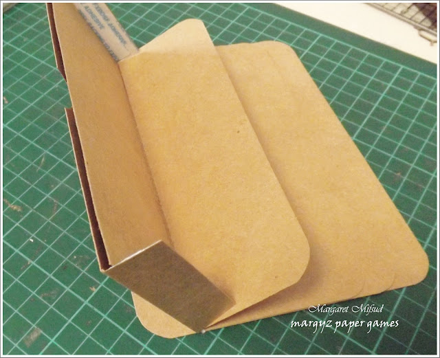 This is the simplest of the pages to make. Simply cut it out and score as per the diagram. Crease the score lines, ink the edges and then adhere it to the last of the 'base leaves'.