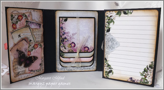 I'm here to share another Mini Album with you. This one is made with the 'Gather Your Dreams' Book Kit from Megs Garden. This is a lovely kit with purples and pinks and greens and lots of gorgeous floral images.