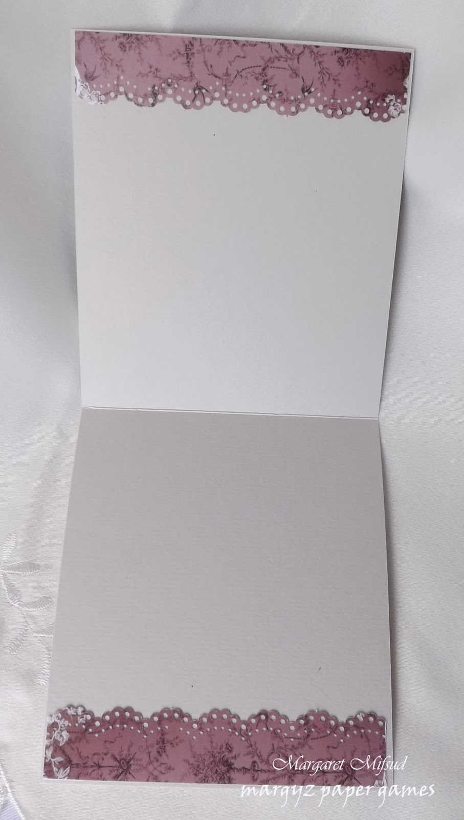 For the inside I've simply cut two strips of paper and edged them with Martha Stewart's Doily Border Punch.