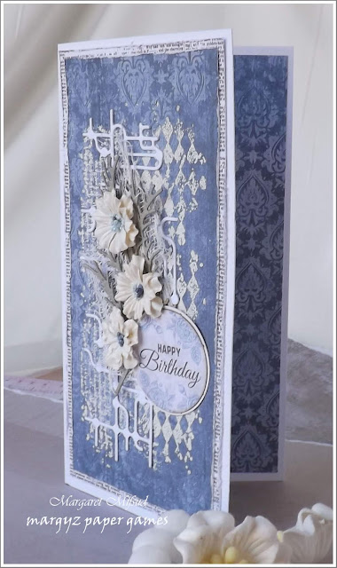 We have a lot of birthdays coming up in the next couple of months so I finally got back into my craft room and have been madly making cards, both masculine and feminine ones. I purchased some new dies recently and have been experimenting with some different ideas gathered from around the net. Nothing new really, just some simple techniques that I thought would work. Some of my experiments have been total disasters but others have turned out quite nicely (Well, I like them anyway) so here I am to share the first of the 'nice ones' with you.